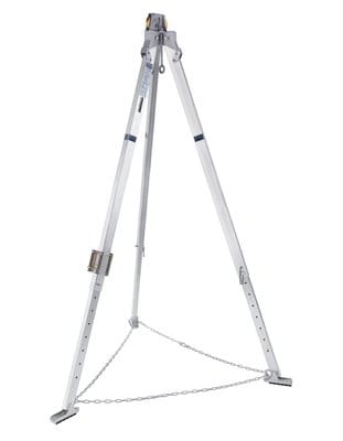 2.1 m aluminium tripod with adjustable locking legs, safety chain, safety shoes, top pulley and quick-mount bracket. When it comes to confined space entry/rescue, it is essential that equipment operates perfectly and quickly. DBI-SALA® has an extensive line of rescue and retrieval systems with decades of proven field service. Safety engineers and site directors trust DBI-SALA® for the type of high quality, rugged systems that will ensure top performance when it is needed the most. Our aluminium tripods are extremely lightweight and portable, easily set-up by one worker and can be transported from one location to another. Ideal for confined space entry and emergency rescue applications, they can accommodate a variety of winches and fall arrest devices. Our tripods are loaded with features such as locking legs, simple detent pin style adjustment, quick-mount mechanical device bracket, safety chain to prevent movement and safety shoes that incorporate a rubber sole for flat surfaces and spiked edges for slippery surfaces.