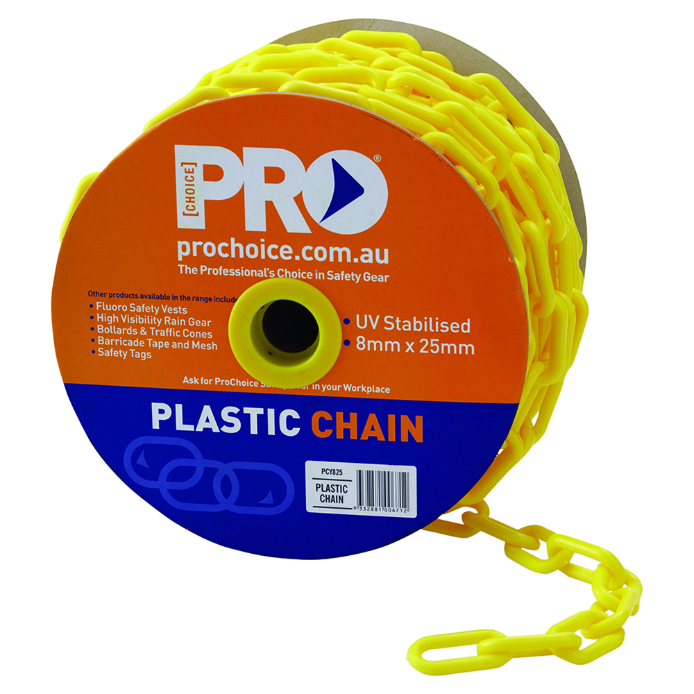 8MM YELLOW PLASTIC CHAIN - LENGTH 25 METRES PER ROLL - 8MM X 25M