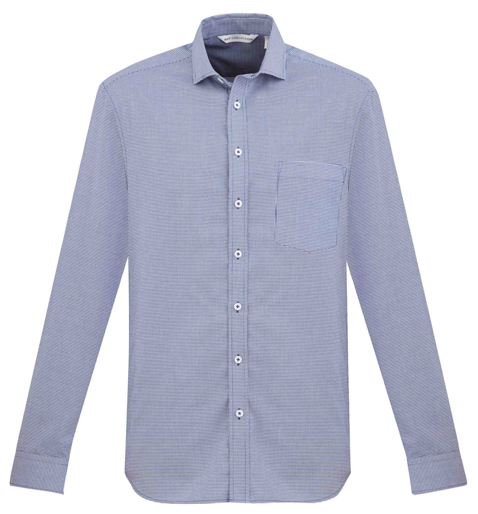 Biz Collection Luxe Mens L/S Shirt 100% Cotton Mini Herringbone