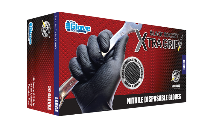 New & Improved! Black Rocket Xtra Grip® Nitrile Disposable Gloves feature extra technology-enhanced texture. The texture is made up of grooves and ridges that create a rough and grippy surface area on the gloves. The incredibly grippy Black Rocket Xtra Grip® Nitrile Disposable Gloves are suited for use across the automotive, industrial, building, coatings & mining sectors.