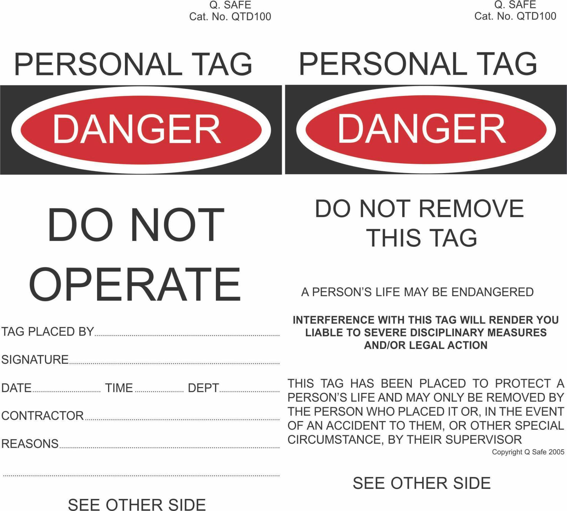 Danger - Do Not Operate Tags (pkt 100 includes cable ties) Manufactured using Tyvek ®, a weatherproof