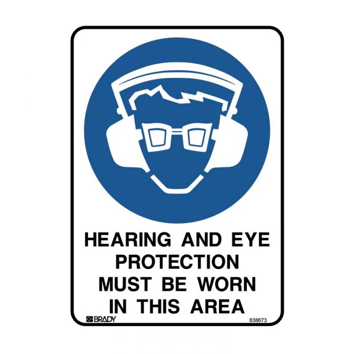 Hearing And Eye Protection Must Be Worn In This Area (Polypropylene) H300mm x W225mm