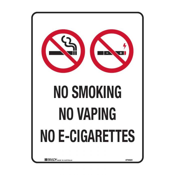 No Smoking, No Vaping, No E-Cigarettes, 300mm x 225mm, Polypropylene