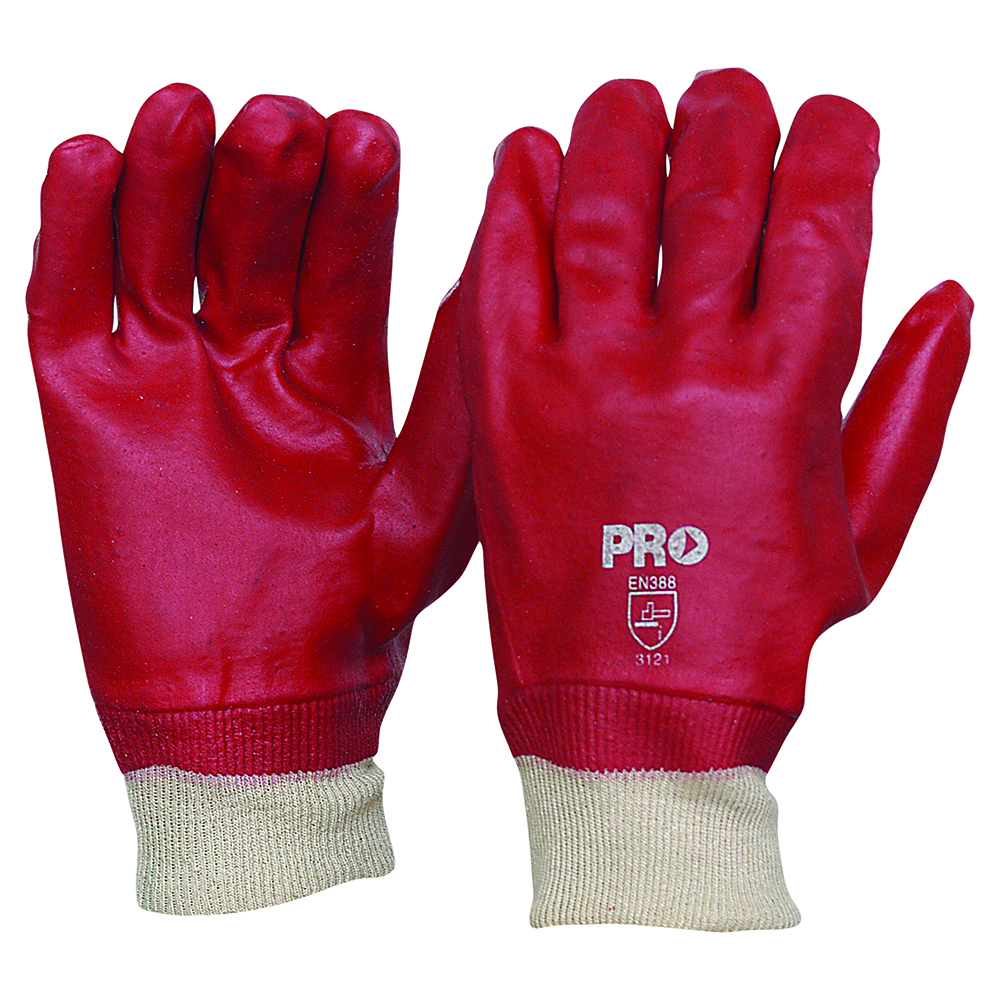 RED PVC SINGLE DIP WITH KNITTED WRIST - LENGTH 27CM - ONE SIZE FITS MOST