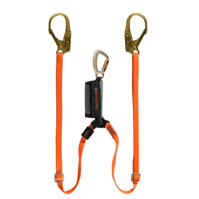 SKYSAFE PRO - ADJUSTABLE lanyards. 22mm gate steel t/action karabiner & 60mm gate steel scaffold hooks. - 1.2 to 1.8mt