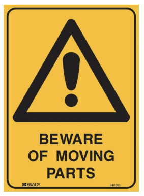 Warning Sign - Beware Of Moving Parts (Self Adhesive Vinyl) H250mm x W180mm